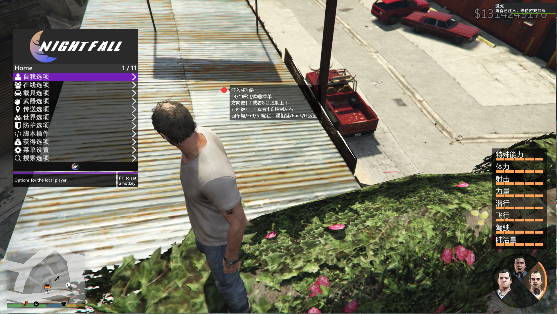 首页 新闻资讯 辅助介绍 了解其他更多热门菜单! Lexis词汇 辅助介绍 Atlas阿特拉斯 使用教程 INFamous 辅助介绍 阿尔法Alpha 辅助介绍 XiRush 辅助介绍 天若Mdays 辅助介绍 Frieza辅助 XiPro辅助 Stand辅助 教程网 下载安装器 在线购买 荒野大镖客2辅助 菜单 首页 新闻资讯 辅助介绍 了解其他更多热门菜单! Lexis词汇 辅助介绍 Atlas阿特拉斯 使用教程 INFamous 辅助介绍 阿尔法Alpha 辅助介绍 XiRush 辅助介绍 天若Mdays 辅助介绍 Frieza辅助 XiPro辅助 Stand辅助 教程网 下载安装器 在线购买 荒野大镖客2辅助 搜索 搜索 Close this search box. GTA5 Nightfall黄昏辅助使用教程 查看更详细的菜单教程,请点击访问教程网:https://www.yinse.wiki 目录 一.注册与激活Nightfall账号 黄昏新官网https://nfcheats.com/注意账号密码不要带符号、空格或中文【密码不能带有特殊符号,仅支持 英文+数字】【密码不能带有特殊符号,仅支持 英文+数字】【密码不能带有特殊符号,仅支持 英文+数字】注册好了输入自己注册的账号密码点登录 三.安装&注入黄昏辅助 下载安装器【安装器下载】GTA5 & RDR2 菜单安装器 – GTA5_RDR2_教程网 (www.yinse.wiki)注入下载后运行注入器如图操作:安装只需要一遍,除非你卸载了或者更换了电脑,否则下次只需要打开游戏注入菜单 四.按键说明 注入成功后F4/* 呼出/隐藏菜单方向键↑ ↓ 或者8 2 控制上下方向键← → 或者4 6 控制左右回车键/Ent/5 确定; 退格键/Back/0 返回 更多教程 gta5黄昏辅助全方位教程 查看更详细的菜单教程,请点击访问教程网:https://www.yinse.wiki GTA5辅助 辅助类别💎2Take1、Stand、午夜、XiPro、北域、黄昏、Frieza、暗星、Ox、全球最顶级的辅助菜单,国外专业团队打造,玩爆其他国产和国外辅助,全系统支持,给您完美的的游戏享受!承诺提供永久专业售后! 联系我们 售后咨询 联系客服 相关教程 更完善的教程网 下载辅助安装器 官方Q群 加入④群 加入③群 加入②群 Gta5辅助 © 2023 All Rights Reserved