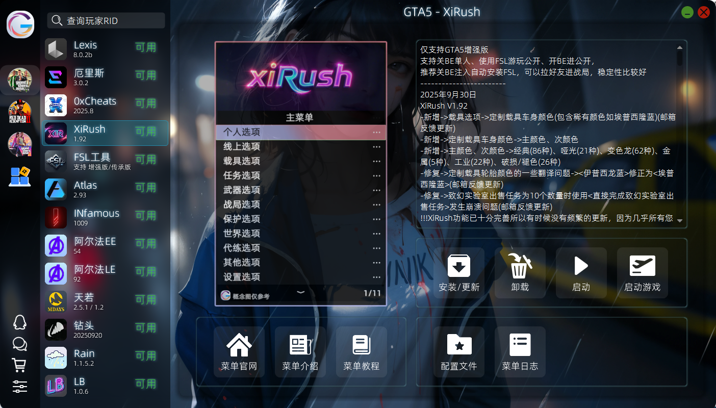 XiRush是目前GTA5增强版全网超强功能多且全能(功能900+)的菜单没有之一,XiRush是增强版的第一款最早诞生菜单并且可以解锁此地无银DLC所有未发布的服装和面具内容,免费保存所有新DLC载具(包括未发布的)到车库,解锁GTA+会员(非自慰相当于买了永久的GTA+),还可以单人任务(一个人就能玩公寓和末日这些任务可以正常体验流程),支持全DLC分类解锁全奖章,GTA+会员的东西可以保存到R星云端,还可以用GTA+的车库并且会保存),个人选项支持口袋衣柜(随时随地直接打开解锁了GTA5所有东西的衣柜),代练选项可无限循环刷金(10万循环、5万循环、1万循环),支持模组选项(有盗梦空间、天空岛、超级机器人、战局颠倒世界等多达上千种娱乐模组),代练选项还能够一键将当前车辆存进车库直接变成自己的(任何车都可以,包括玩家的,点一下直接一模一样的变成自己的),代练能解锁GTA5全服装、纹身、眼镜、面具、配饰、帽子(包括各种稀有的例如红鼻子),代练还能够解锁GTA5全武器(包含所有厢型车的和WM这种稀有的)。任务功能支持增强版全DLC任务人工智能AI全图远程自动帮你完成,只需要点一下就会帮你自动完成任务获得钱从此解放双手,支持人工智能AI全图远程自动上岛,人工智能AI全图远程自动赌场任务,人工智能AI自动别惹徳瑞任务,人工智能AI自动保金办公室任务,人工智能AI自动当当钟农场终章任务,人工智能AI自动末日任务,人工智能AI自动公寓任务(可以一键完成犯罪之神获得1500w,只需要点一下),XiRush是目前支持最多人工智能AI自动任务的菜单,且仅任务功能就已达到200+的数量(具备目前最完善的全产业系统和全DLC任务)。您在战局遇到的挂哥功能在这里都有,仓库大点兵,全局去医院送药,全局跳伞,全局送外卖,全局出租车工作,套笼子,召唤fib攻击,移除所有武器,召唤莱斯特,全局崩溃游戏,全局无限死亡,全局爆炸等几十种恶搞崩溃功能。目前任务、代练、搞人功能为增强版所有菜单中最丰富的没有之一,移除武器店的所有限制(可改可买所有东西)(可在武器店改棒球棒和小刀皮肤,1级也能买所有武器),还能够定制车牌(自定义数字字母,雪碧可乐等多种稀有车牌定制),能够直接完成所有职业进度相当于直接通关了一遍GTA5并且做了所有几乎能做的事,使用此功能后会解锁一堆奖章,会直接跳过大部分前置等等,会解锁一堆联系人,总之,如果您想要把新号直接变成老鸟就用它就完事了,此功能非常变态,使用后可以领取职业进度的所有奖励,还能够崩溃其他玩家的游戏让他直接回桌面全网增强版仅有本菜单能够实现,可以在增强版中使用所有基础功能+GTA5的全DLC任务例如佩里克岛末日公寓赌场当当种农场突袭回收站等任务的前置跳过以及改分红+可对其他玩家进行各种恶搞套笼子、送去西伯利亚种土豆、踢出和爆炸全局等多达30+的恶搞功能,线上DLC衣服面具奖章全解锁功能,包括拥有全网增强版独占功能一键完成任务与CEO满仓出货,还有全网独占的单人开启任务,防止其他辅助恶搞的保护,我们还提供代练选项(200+数量)为您修改等级和属性解锁增强版所有服装等,萌新最爱的服装编辑器,还能够踢出战局玩家直接让他提示战局错误回线下当然你也可以直接让他的游戏崩溃回桌面